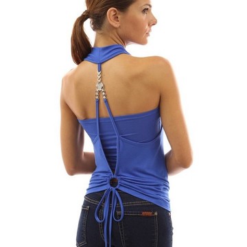 2106歐美熱賣性感掛脖堆領露背二件套T恤 /