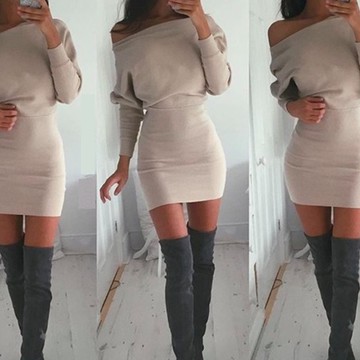 斜肩時尚性感連衣裙 女裝 /
