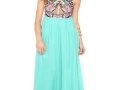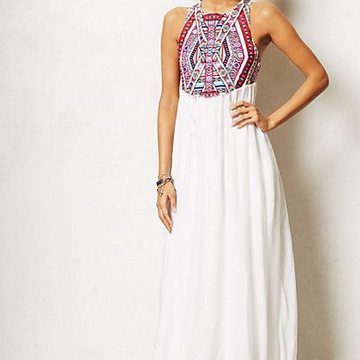 歐洲夏裝新款時尚民族風印花拼接純色拖地吊帶T臺秀長裙 /