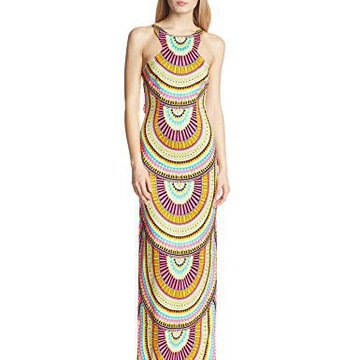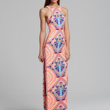 歐美波普風3D印花性感開叉露背連衣裙爆款夜店拖地長裙子 /