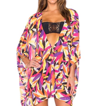 2016歐美印花雪紡沙灘衣外套比基尼外罩衫防曬開衫 /