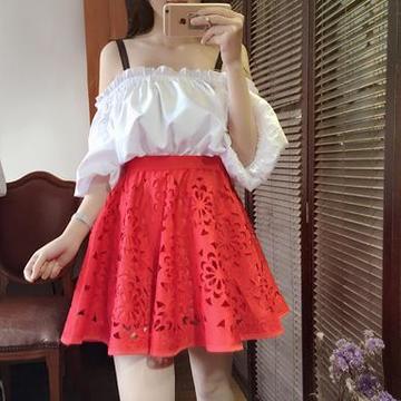 2016春夏韓版洋氣豎紋顯瘦泡泡袖露肩娃娃衫女上衣一字領襯衣 /
