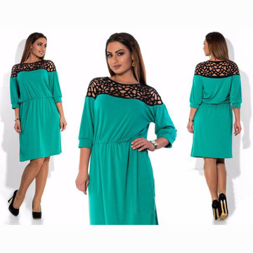 歐美時尚2016早春新款七分袖圓領拼接收腰顯瘦網紗氣質連衣裙 /