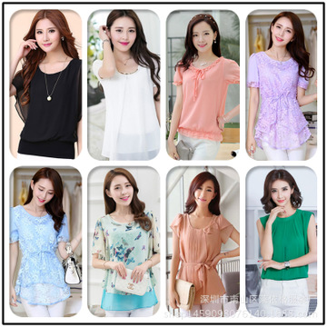 地攤熱賣外貿(mào)原單女裝批發(fā)短袖雪紡衫 韓版雜款女裝夏季雪紡衫女 /
