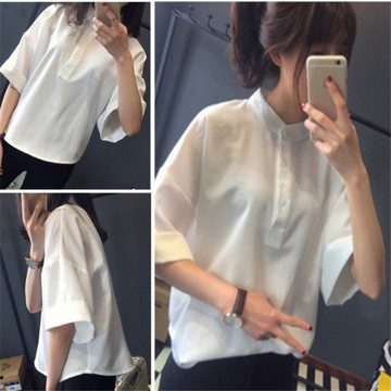 春夏 女裝寬松顯瘦打底上衣立領(lǐng)三??奂兩宸中湟r /