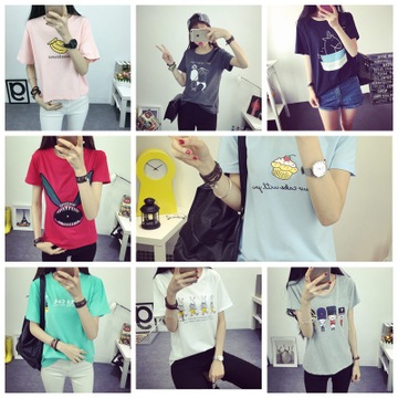 2016夏女裝短袖t恤地攤貨源韓版女裝印花打底衫阿里巴巴批發外貿 /