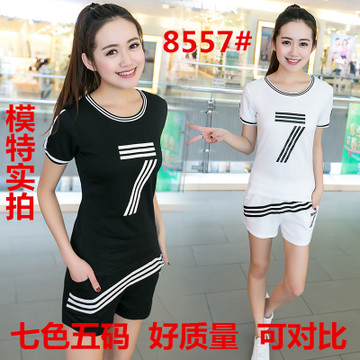 歐洲站2016夏季新品休閑運動套裝女純棉短袖T恤短褲套裝半袖套裝 /