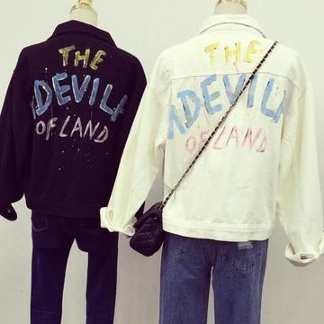 2016春新款MISS LUCY韓國東大門個性噴漆字母涂鴉休閑寬松外套女 /
