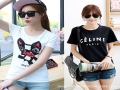 2016新款女式T恤 時尚百搭圓領花樣印花女短T恤 庫存批發女裝T恤 /