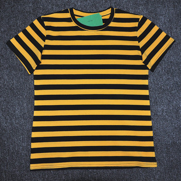俏皮百搭于一身的黃黑色 小蜜蜂T恤女條紋寬松短袖T恤 /