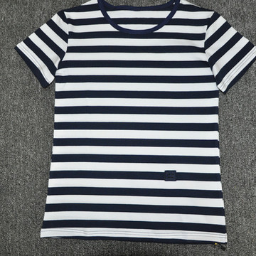 春夏新款 百搭寬松純棉方塊笑臉同款藍(lán)白條紋短袖t恤女 /