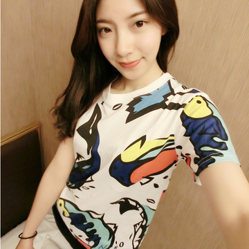 夏裝新款2014全身海洋印花小魚女款短袖t恤 /