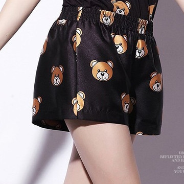 新款卡通可愛小熊頭像圖案短裙數碼印花半身裙松緊女夏潮 /