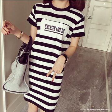 廠家直銷 2016夏款印花字中長款裝連衣裙女 /