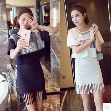 廠家直銷 套裝夏季短袖2016連衣裙兩件套 /