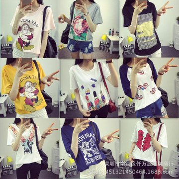 2016新款夏季女式短袖t恤打底衫女 地?cái)傌浽磁b印花圓領(lǐng)短袖 /