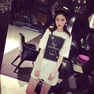 • 2016夏裝新款韓版女上衣中長款女學生短袖打底衫寬松大碼圓領T恤 /