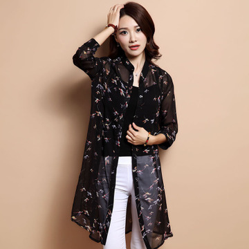 夏季印花雪紡衫長袖防曬衫女韓版中袖披肩外套薄款開衫2016潮品 /