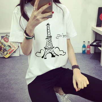2016夏季新款韓版寬松大碼休閑短袖T恤女夏學(xué)生半袖鐵塔印花女士 /