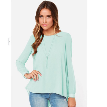 歐美新款寬松女襯衫褶皺前短后長燕尾雪紡衫 /