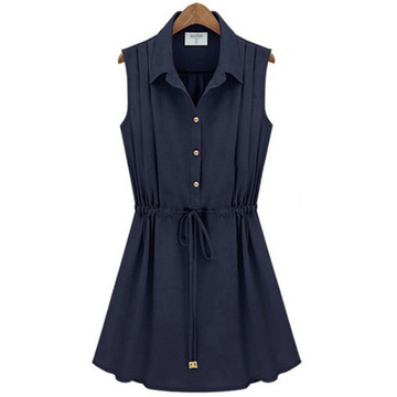 夏季新款歐美大牌綁帶翻領背心裙雪紡連衣裙中裙 /