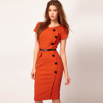 外貿款歐美風釘鈕時尚包臀修身連衣裙【配腰帶】 /