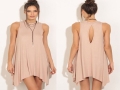 速賣通ebay熱賣2016歐美夏季新款純色后背鏤空無袖不規則連衣裙 /
