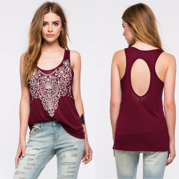 2016速賣通eaby爆款歐美夏季新品外貿性感露背印花無袖T恤 /