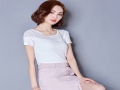 2016新款夏韓版網(wǎng)紗蕾絲花邊女裝短袖T恤女修身打底小衫 /