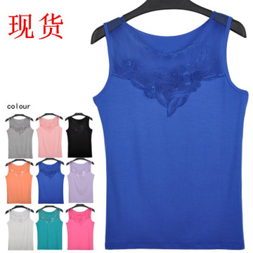 2016夏季新款韓版莫代爾工字背心花邊領(lǐng)修身純色高彈力打底衫 /