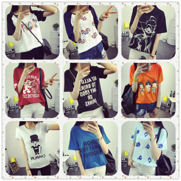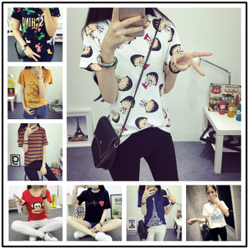 女士t恤 地攤貨源批發夏季女裝短袖t恤 韓版修身圓領 女式t恤 /