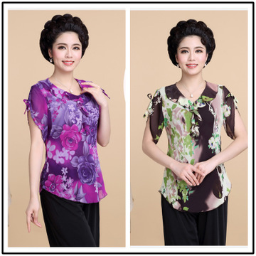 中老年女裝 春裝冰絲大碼媽媽裝 休閑中年短袖套裝T恤女 農村地攤 /