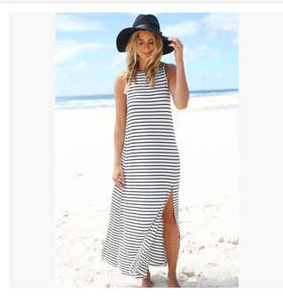 2015夏季新款 歐美風(fēng)時(shí)尚漏背針織條紋連衣裙 外貿(mào)批發(fā) /