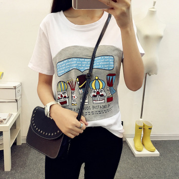 2016夏裝短袖t恤女中長款印花打底衫夏寬松大碼體恤半袖韓版學生 /