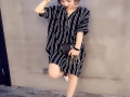 2016夏裝新款 韓版豎條紋中長款襯衫單排扣短袖長襯衣女潮 /