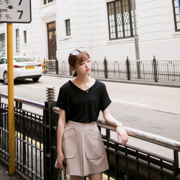 2016 夏韓版莫代爾體恤歐美寬松純色V領短袖t恤女 打底衫潮A /