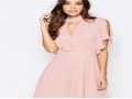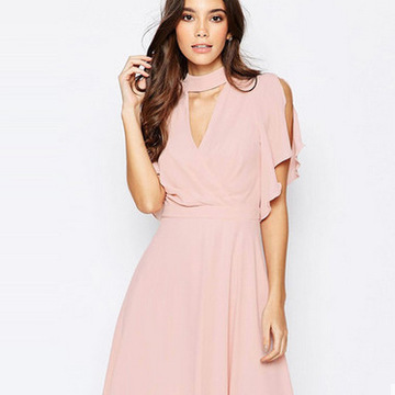 黎紅女裝2016春夏新款時尚性感V領(lǐng)掛脖露肩 收腰褶皺雪紡連衣裙 /
