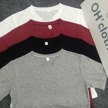 2016韓版竹節(jié)棉純色開(kāi)領(lǐng)短袖寬松t桖上衣女夏(模特實(shí)拍) /