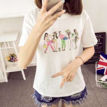實(shí)拍 夏裝新款歐美百搭打底圓領(lǐng)短袖個(gè)性圖案印花T恤女上衣 /