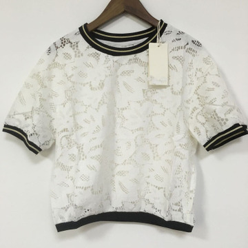 特價出售現貨夏裝正品代購短款短袖鏤空蕾絲衫針織衫2152015150 /