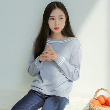 2016春季韓國東大門新款一字領套頭針織衫女裝寬松長袖打底衫 /
