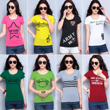 夏季女裝純棉t恤 修身百搭韓版印花短袖t恤女打底衫 阿里巴巴批發 /