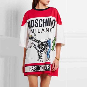 16夏新款奶牛走秀中長款T恤字母寬松短袖連衣裙 /