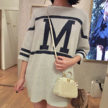 MJ2016春夏新款安哥拉兔毛M字母毛針織衫女METIE學院風oversize /
