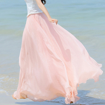 2016春夏新款半身裙垂直顯瘦長裙大擺加厚三層女裙雪紡裙拖地裙子 /