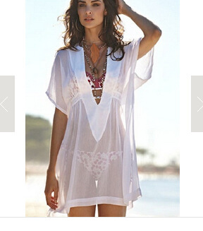 歐美流行時(shí)尚性感V領(lǐng)透明沙灘防曬衣罩衫 /