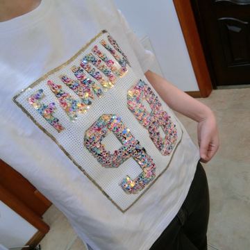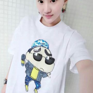 2016春夏新款韓版寬松竹節(jié)棉短袖卡通亮片純棉時尚休閑T恤亮片繡 /