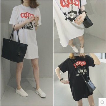 2016春夏季 各種瓶子涂鴉印花寬松圓領(lǐng)字母簡約中長款短袖棉質(zhì)裙T /