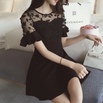 2016夏裝新款韓版修身 百搭肩部網紗荷葉邊連衣裙短裙女 /
