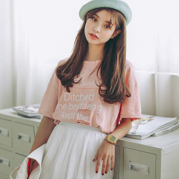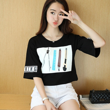2016夏季新款短袖t恤女文具印花純色百搭直筒修身上衣女 /